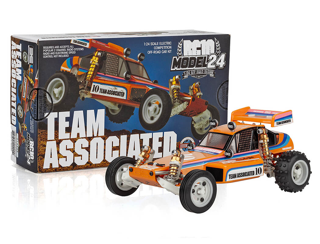 Experience off-road RC racing heritage in a compact form. The iconic RC10—reborn in 1:24 scale—is ready to race, display, and impress. Take the challenge and build yourself a winner. Team Associated RC10 Model 24.