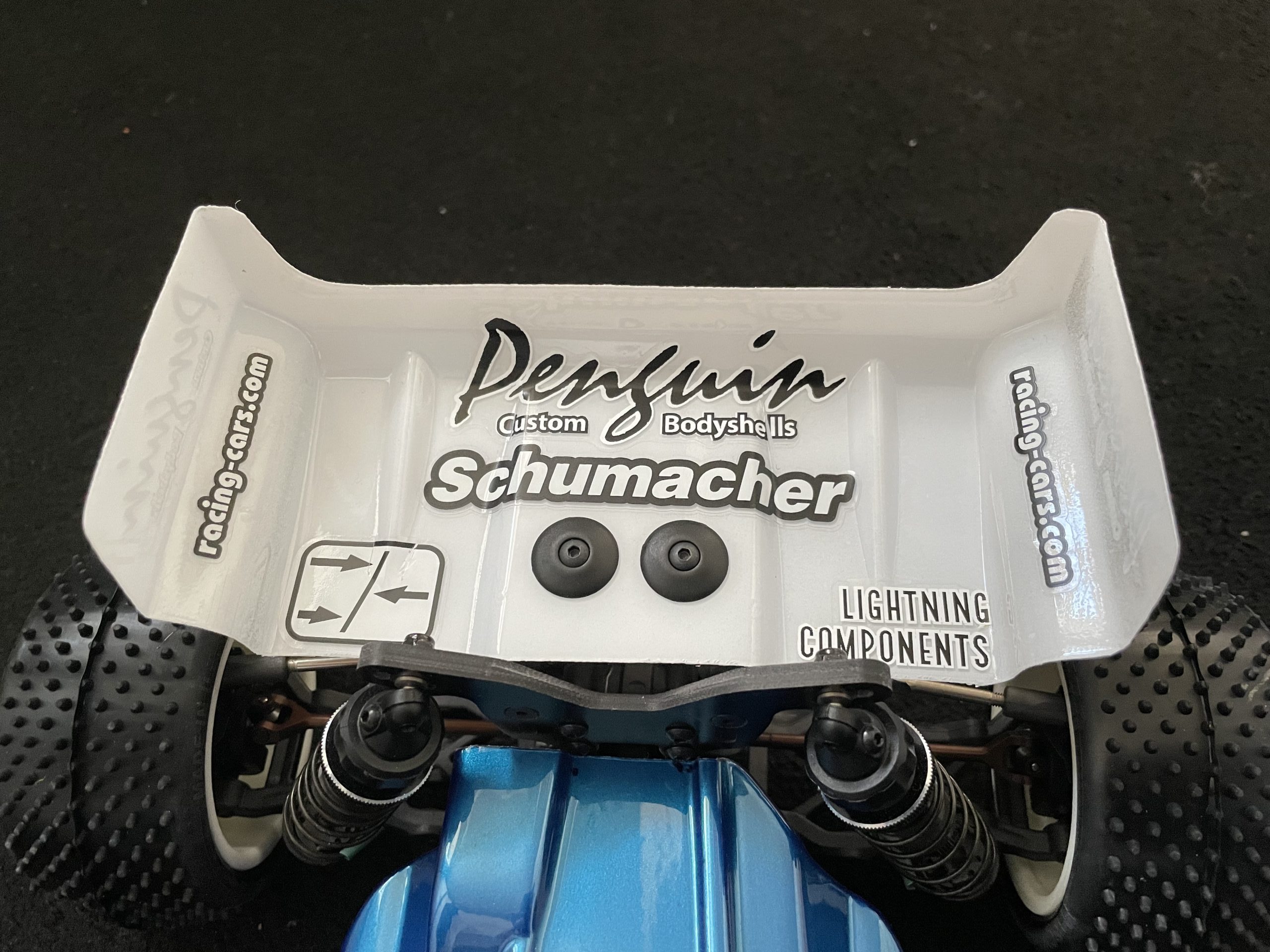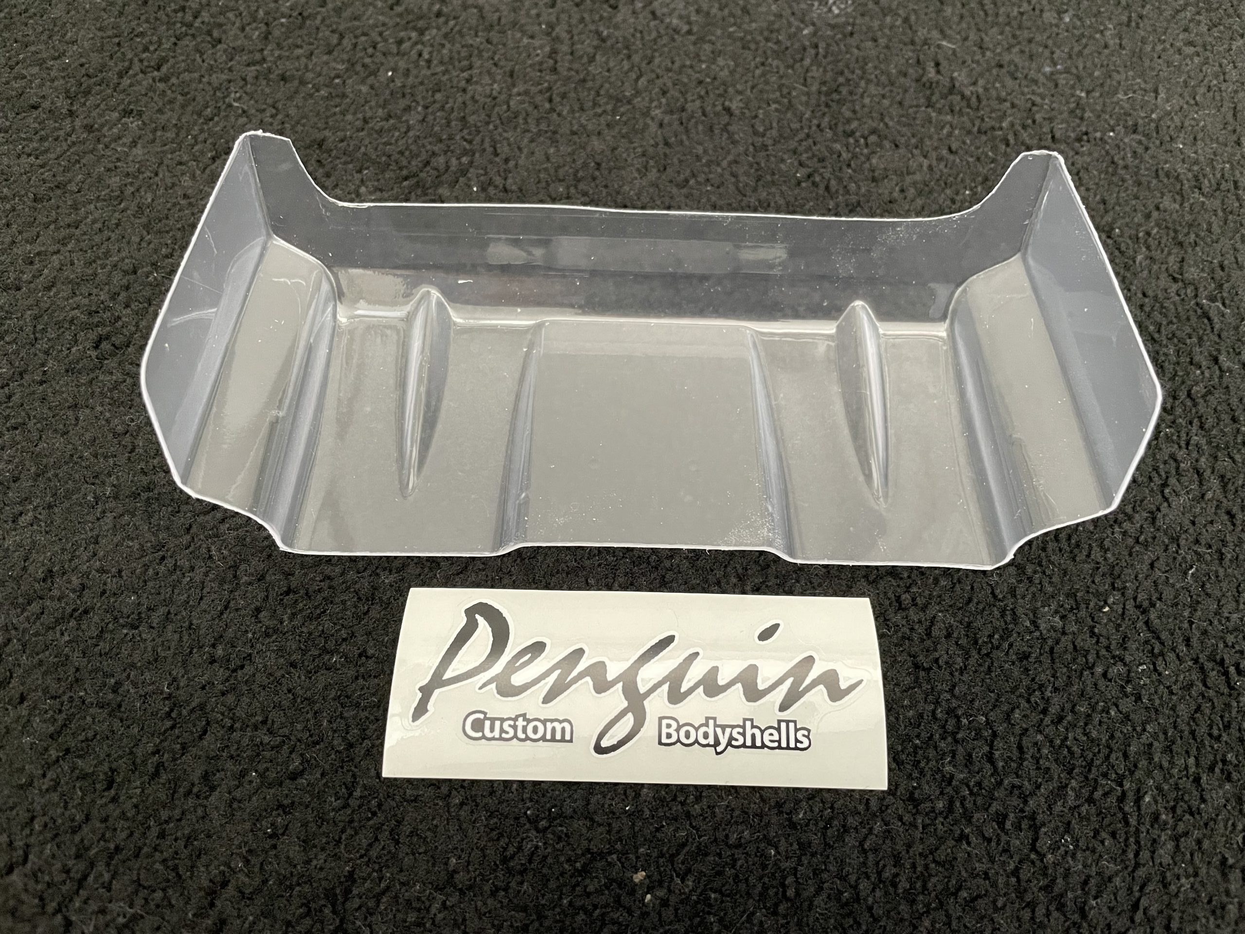 New rear wing designed for 4wd and 2wd buggy’s Made from strong 1mm thick lexan , has a large flat profile to aid downforce , with a large variation on wing mounting points this wing will fit all models Has multiple height gurney trim lines to fine tune the car in either outdoors or indoors 6.5 inches wide